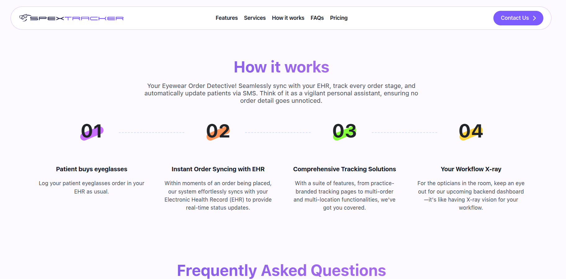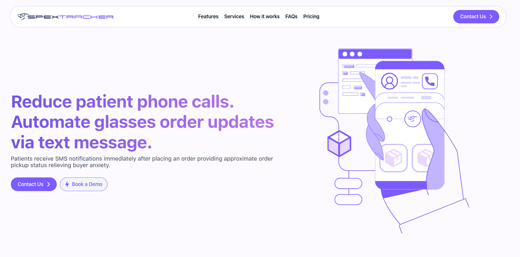 SpexTracker revolutionizes the way optometry practices handle eyewear orders. This product seamlessly integrates with optometry practices' EHR systems, significantly reducing patient phone calls by automating order updates via SMS and providing an easy website User Interface to track order details.