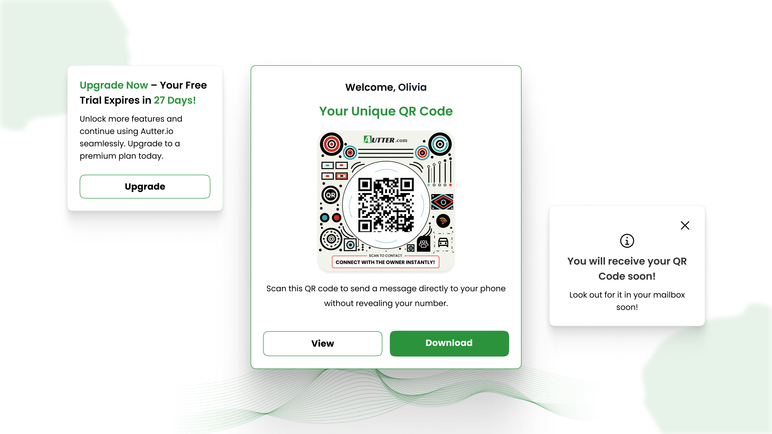 Autter.io is a privacy-first messaging platform that enables users to connect using personalized QR codes — without sharing phone numbers. Anyone could scan a QR code pasted on user's car to reach out to them in a secure way.